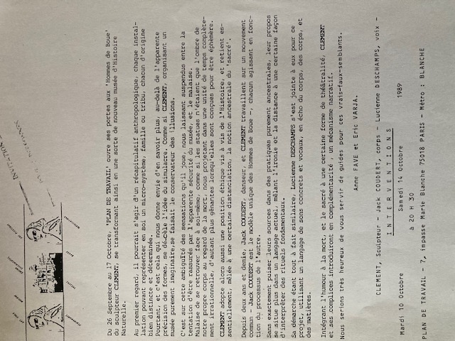 Du 26 septembre au 17 octobre PLAN DE TRAVAIL ouvre ses portes aux « Hommes de Boue » du sculpteur Clément, se transformant ainsi en une sorte de nouveau musée d'Histoire Naturelle.